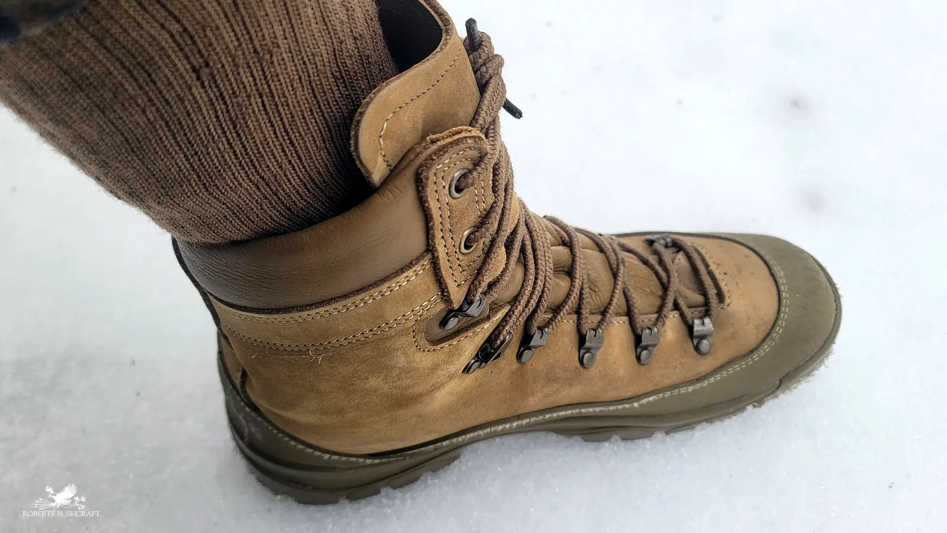 I picked them up in XL, Coyote Brown, sized to pair with heavier boots. The test was simple and honest. I pulled the socks on, laced up my Danner 950 MCB Mountain Combat Boots, and headed out into a cold day with snow still on the ground.