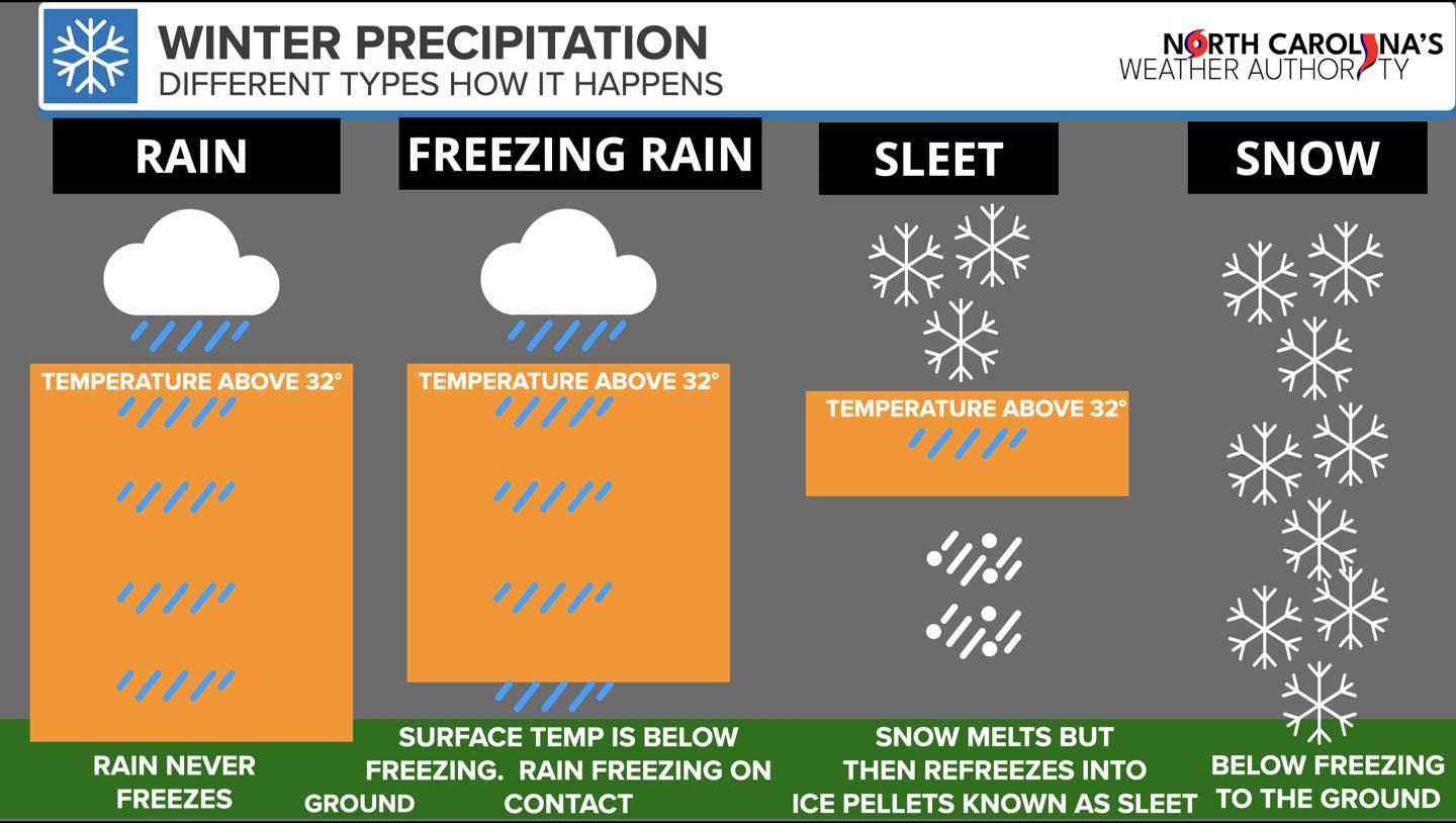 If you must travel, rethink it now. In North Carolina, winter storms usually begin with freezing rain or sleet. Roads ice over before snow accumulates, and that early window is when accidents are most common.